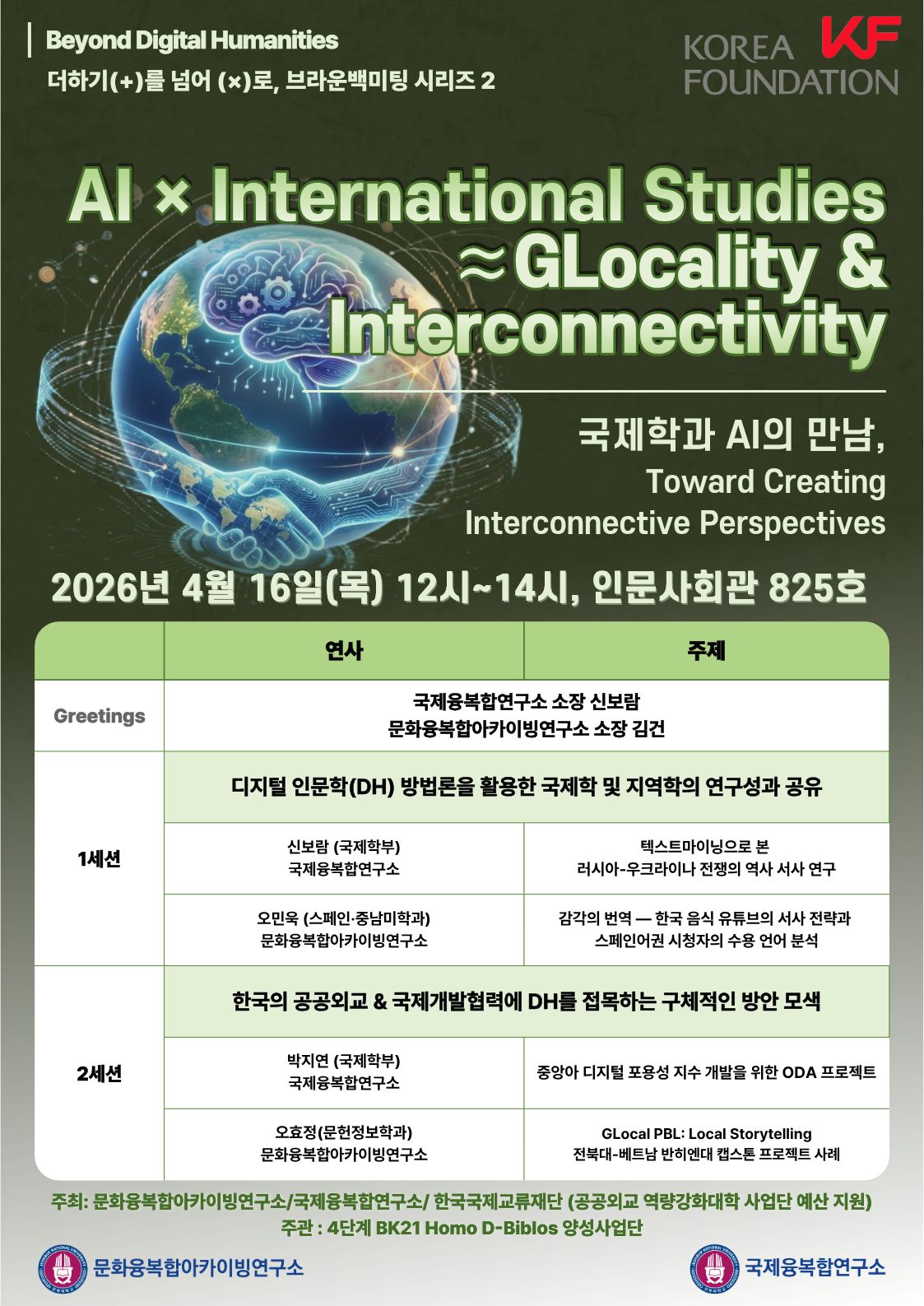 2026 Beyond DH 학술 포럼:AI × International Studies ≈ GLocality & Interconnectivity
